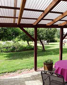 Ein Highlight ist die große überdachte Terrasse, mit sich anschließender Liege- und Spielwiese. Die Terrasse ist direkt vom Zimmer aus begehbar und liegt auf der Südseite.